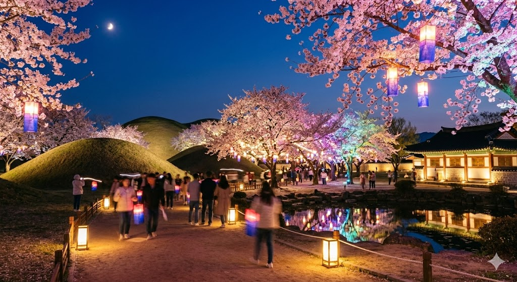 밤이 되면 더욱 마법 같아지는 경주 벚꽃의 화려한 야경 여행
